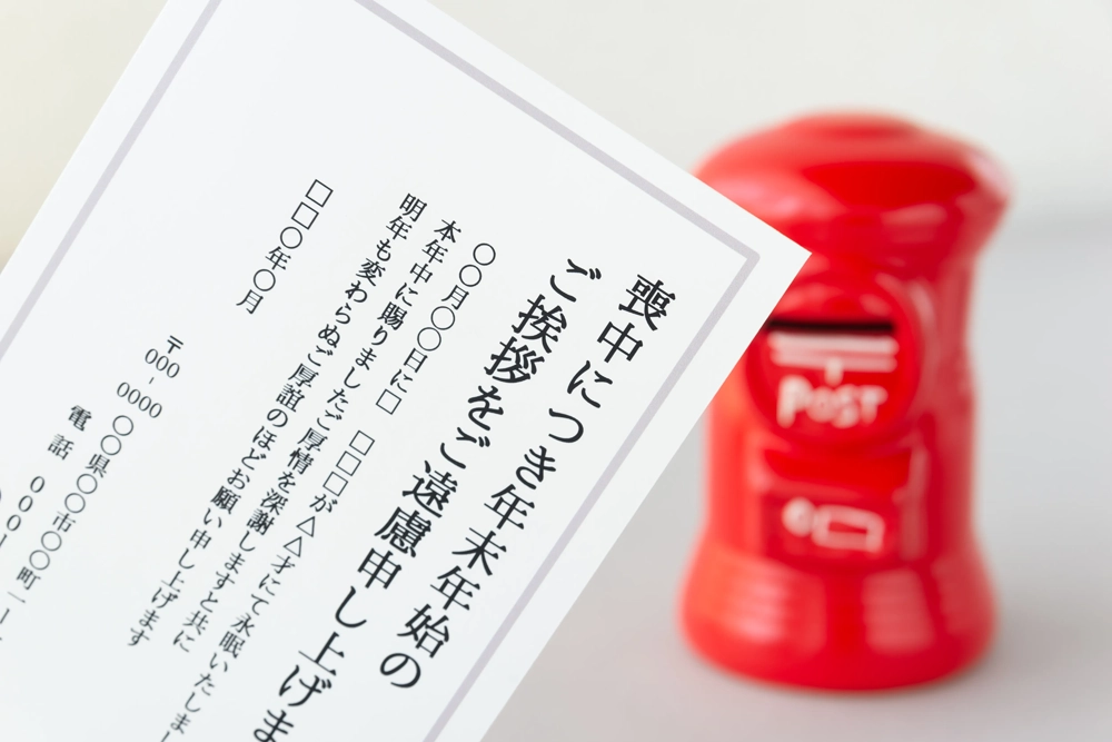 喪中の年始には、年賀状のやり取りを控えるのが一般的です。普段年賀状のやり取りをしている人には「喪中はがき」を送り、年始の挨拶を控える旨をあらかじめ伝えます。投函の時期は11月上旬から12月上旬が目安です。相手が年賀状の準備を始める前に届くようにすることが大切です。