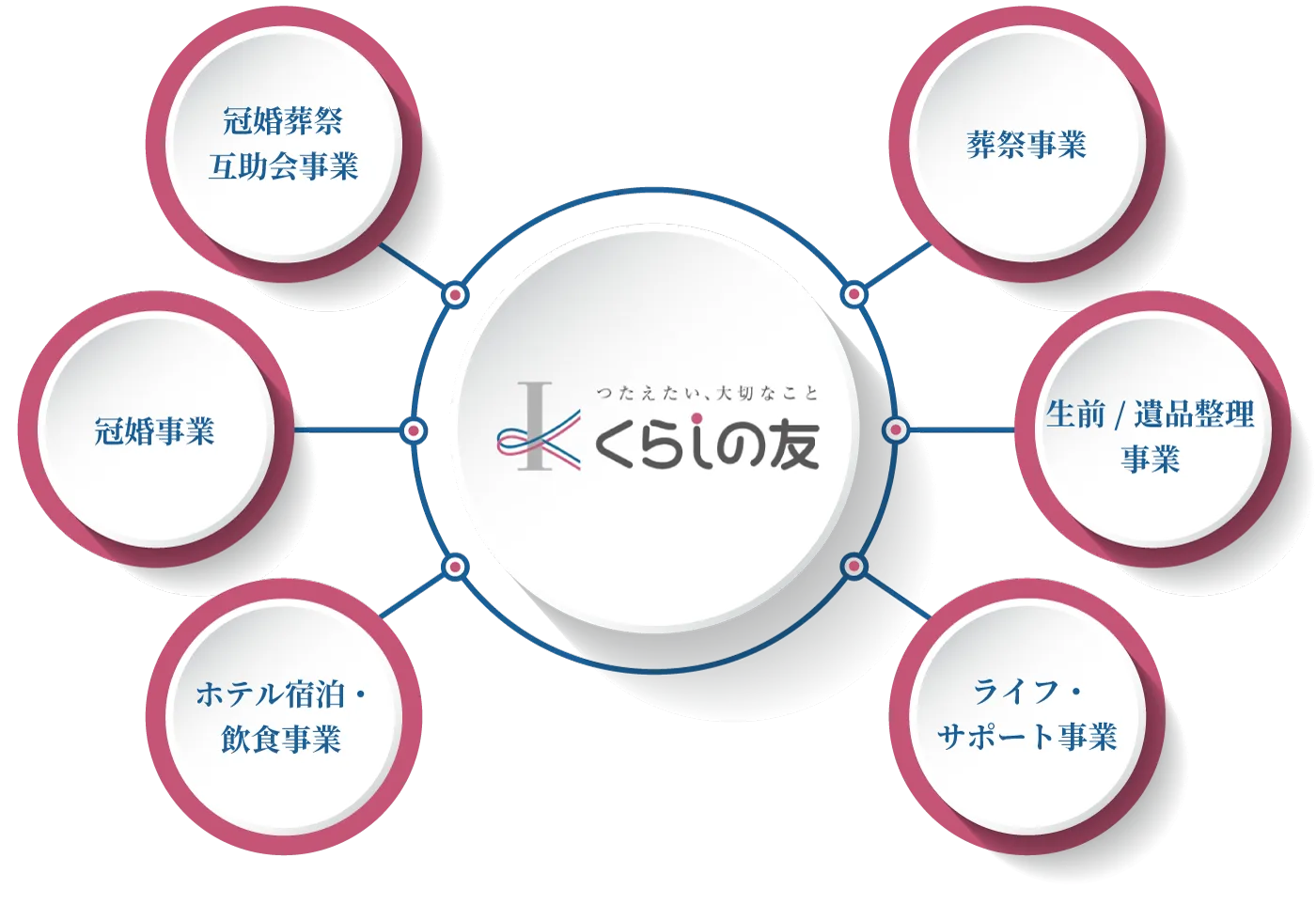 くらしの友は、新たな時代の“つながり”を担う事業を幅広く展開しています。