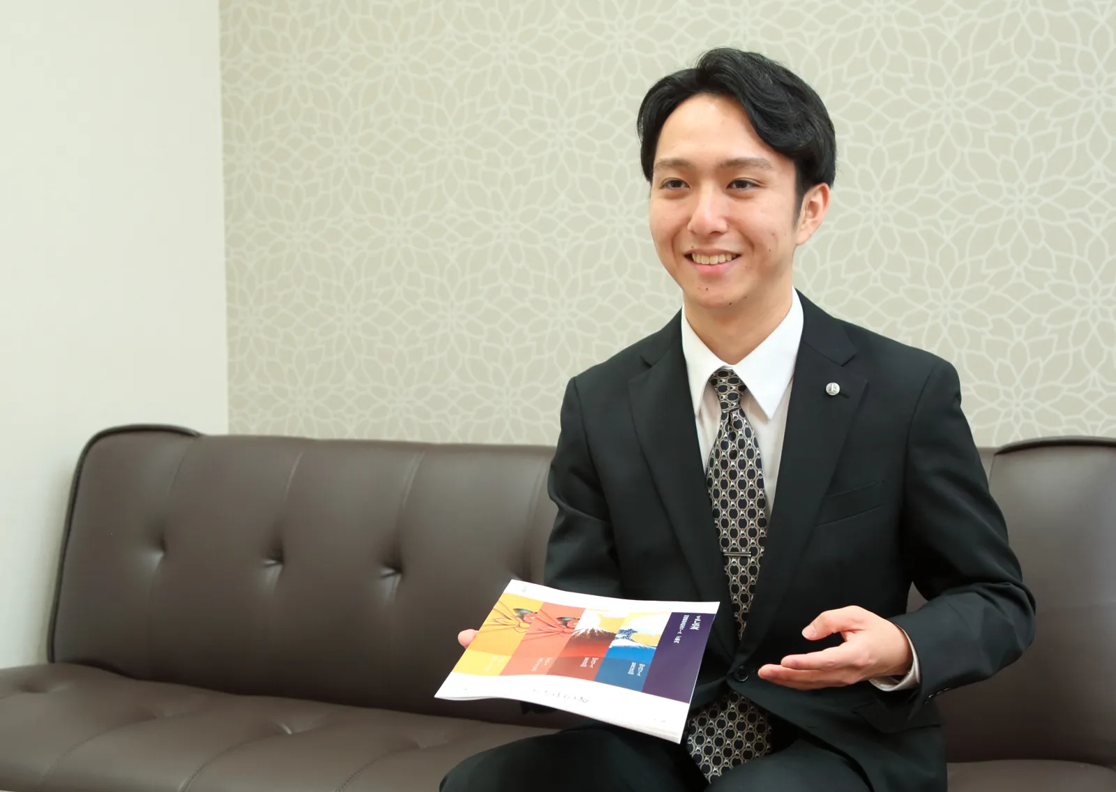 営業のお仕事は、冠婚葬祭に備えて事前にお金を積み立てていただく“互助会”をお客様にご提案します。