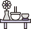 通夜がはじまるまでに駆けつけてくれる弔問客が故人様にお線香をあげられるよう、香炉やローソク立てなどが置かれた台。通常は故人様を安置した後に枕元に設置します。